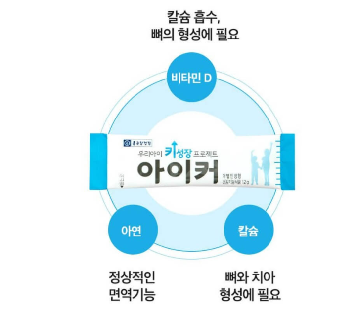 아이커 성분 종근당 아이커의 성분은 황기추출물 등 복합물, 칼슘, 비타민D, 아연 등 다양한 성분으로 되어 있고, 특히 핵심은 키성장 기능성 인증원료인 황기추출물 등 복합물이 주성분입니다. 국내 최초 어린이 키성장 기능성 인천 원료 황기추출물 등 복합물(HT042)성장기 어린이를 위해 필요영양을 강화한 CKDHC 포뮬러성장기 우리아이에게 부족한 칼슘 흡수를 돕는 비타민 D정상적인 면역기능을 돕는 아연뼈와 치아 형성에 꼭 필요한 중요영양소인 칼슘